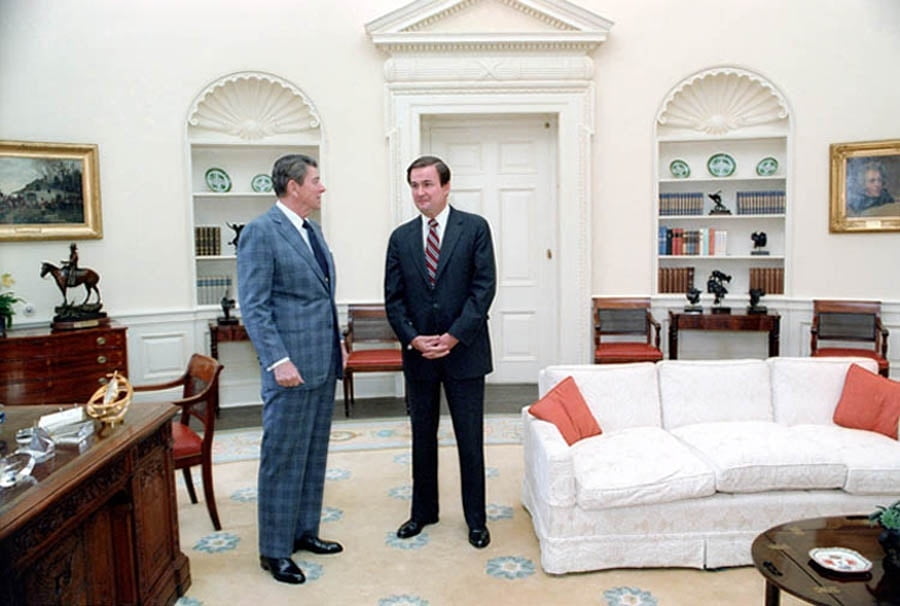 После победы в 1980 Рейган назначает Брэдфорда, который поддерживал его на выборах, главой NEH (National Endowment for the Humanities), но вынужден отозвать номинацию под давлением неоконов. В защиту Брэдфорда вступается все расистско-антисемитское крыло партии, происходит раскол.